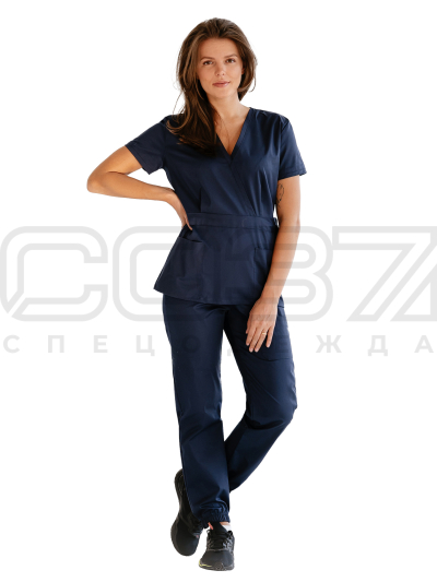 Костюм санитарный женский АР407 цв.тёмно-синий тк.хлопок/спандекс в Курске