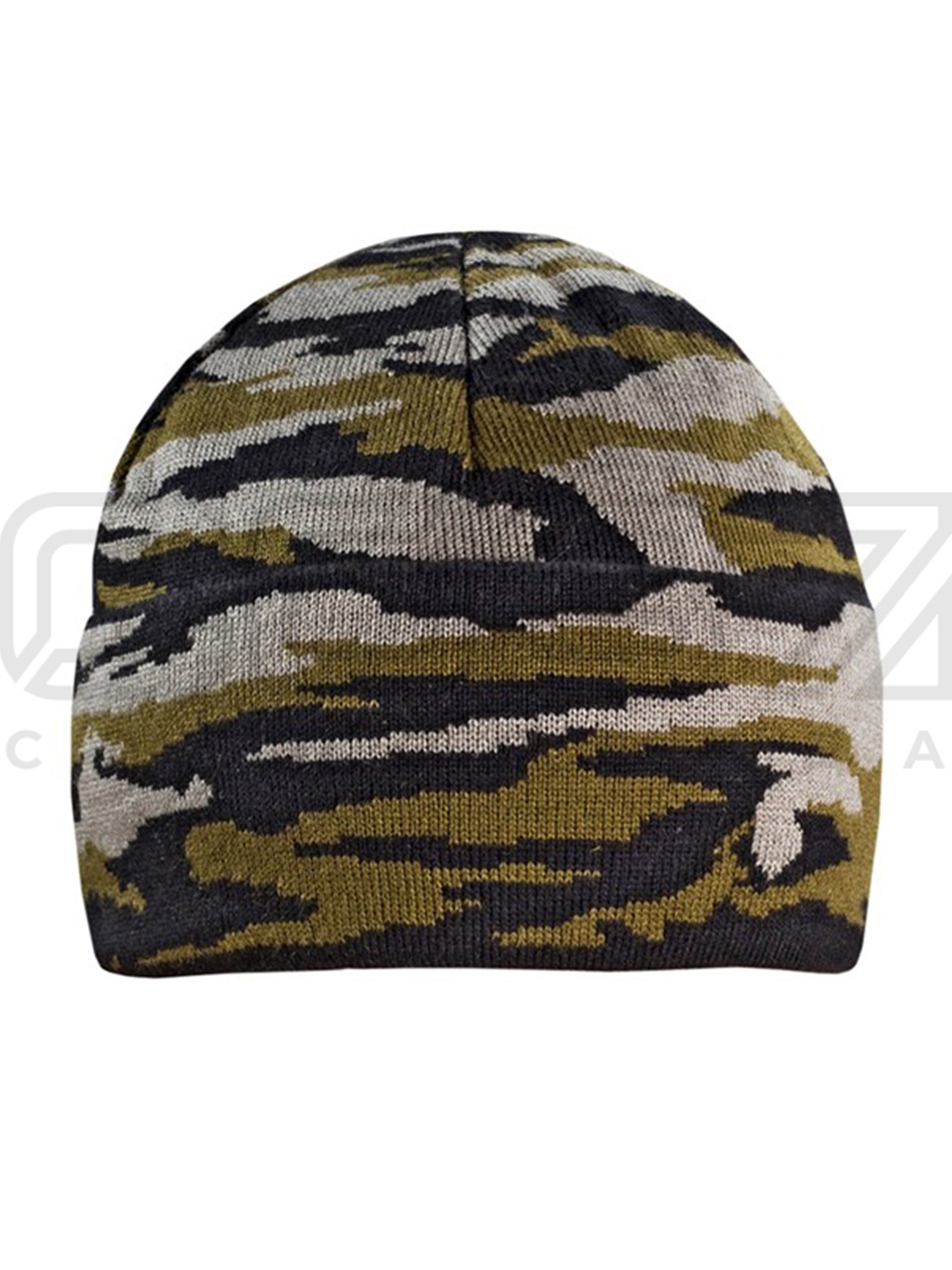 Шапка вязаная "Winter" 2-х нитка с отворотом цв.кмф/зелёный тк.акрил в Курске