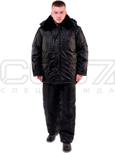 Костюм рабочий зимний охранника "Гарнизон" цв.чёрный тк.оксфорд (куртка+пк) в Курске