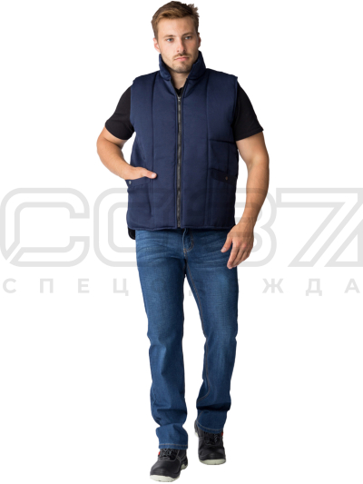 Жилет рабочий утеплённый "Базис" цв.тёмно-синий тк.грета в Курске