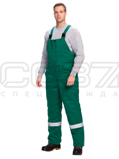 Полукомбинезон рабочий зимний "Маховик" с СОП цв.зелёный тк.смесовая в Курске