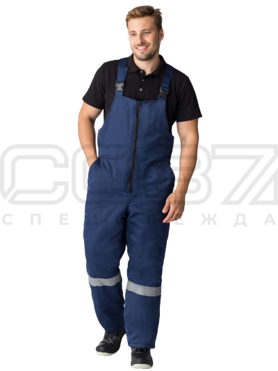 Полукомбинезон рабочий зимний "Маховик" с СОП цв.тёмно-синий тк.смесовая в Курске