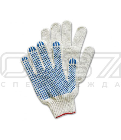 Перчатки трикотажные 7 нитей, 7,5 класс вязки, х/б ПВХ - точка.