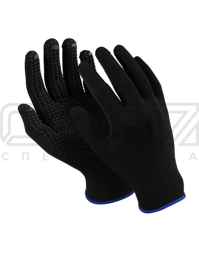 Перчатки нейлоновые чёрные двойной оверлок 15 класс вязки ПВХ Точка в Курске