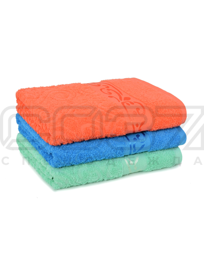 Полотенце однотонное гладкокрашенное с выбитым рисунком в структуре махры. Бордюр с добавлением вискозной нити.